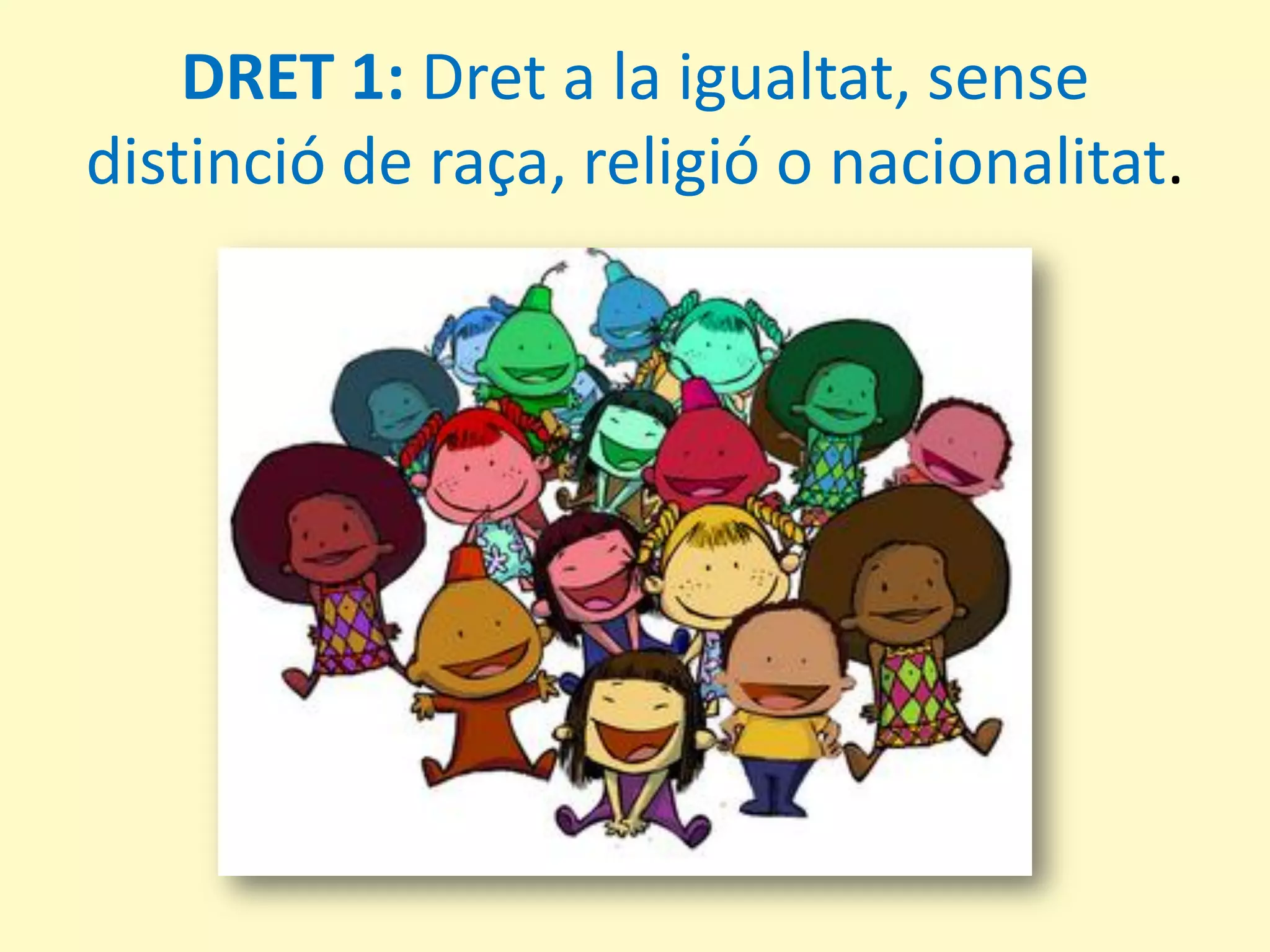- Dret a la igualtat, sense distinció d’ètnia, religió o nacionalitat.