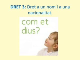 - Dret a un nom i a una nacionalitat.